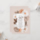 Une invitation à la fête du 90e anniversaire boho rustique avec fleurs et feuilles d'automne.