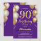 Invitation 90e anniversaire violet et ballons d'or Confetti