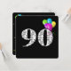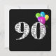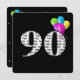 Texte en noir et blanc gras sur arrière - plan noir avec ballons colorés pour invitation de fête de 90e anniversaire.