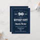 Invitation de fête du 90e anniversaire. Elégant style marine et blanc rétro avec police de script. Salut à 90 ans ! Message-moi si vous avez besoin d'une personnalisation plus poussée.