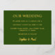 Classic Forest Green Mariage Foil Invitation, facile de personnaliser le devant de l'invitation avec les détails du mariage et le nom du couple se mariant, en utilisant le modèle de personnalisation en ligne avant de commander. L'avant de l'invitation présente un beau texte en feuille métallique sur un bel arrière - plan couleur "vert forêt", tandis que l'arrière de la carte est couleur claire "vert forêt".