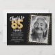 Célébrez votre 85e étape spéciale avec style grâce à nos invitations finement confectionnées. Conçues avec un fond noir personnalisable qui passe à la teinte de votre choix, ces invitations capturent l'essence du célébrant avec un emplacement de photo spécial. Une touche de paillettes dorées et de ballons à hélium ajoute une touche d'élégance, tandis que le modèle de texte moderne vous permet d'ajouter votre propre touche personnelle. Rendez votre 85e anniversaire vraiment inoubliable avec nos invitations uniques.
