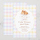 Célébrez l'arrivée imminente de bébé avec cette adorable invitation pour une baby shower « Un petit lapin tout mignon est en route ». Ce charmant design présente un lapin aquarelle endormi entouré de vichy pastel doux pour un look doux et rêveur. Le cadre élégant à bord festonné et la typographie script délicate créent un style intemporel parfait pour une baby shower sur le thème du lapin, une baby shower de printemps, une baby shower de Pâques ou une célébration neutre. Personnalisez facilement les détails pour créer une belle invitation qui invite les amis et la famille à célébrer le nouveau petit trésor.