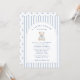 Invitation pour la Baby Shower du Petit Marin | Ours à rayures bleues de style aquarelle - Célébrez l'arrivée imminente de votre petit avec un charme côtier intemporel. Cette invitation pour la baby shower du Petit Marin présente des rayures aquarelles bleues douces, une illustration d'un ours marin adorable et une typographie classique pour un look à la fois élégant et chaleureux.