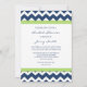 Douche nuptiale invitation personnalisée modèle photo dans élégante vert citron clair, bleu marine foncé et blanc décontracté et rétro chevron zigzags raypes motif, chic et féminin, personnalisable avec vos détails de douche. Également disponible en cartes de remerciement et invitations pour la fête de mariage.