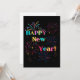 Cette invitation présente les mots "Bonne Année" dans une police unique et grasse avec des lettres de différentes couleurs, ainsi que des feux d'artifice et des serpentins de confettis dans le thème et le style du Nouvel An. Imprimé sur un papier classique de 17,5 pt d'épaisseur avec une finition mate non couchée et une texture coquille d'œuf, fabriqué et imprimé aux États-Unis avec "À votre santé !" imprimé au verso.
