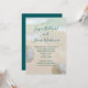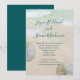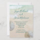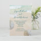 Faire-part de mariage de plage avec motif de dollars de sable. Le sable de la plage et l'eau bleu-vert tropicale servent de fond au texte. Les noms complets du couple, dans un script manuscrit moderne en haut du papier avec un paragraphe de texte imprimé en dessous. Un espace de texte suffisant est prévu pour l'adresse du lieu de réception et / ou le site web du mariage / d'autres informations. La formulation est parfaite pour une petite réunion décontractée. Des dollars de sable blancs naturels ornent les bords.