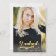 Utilisez cette élégante et élégante invitation à la remise de diplômes de photographie pour invitation votre famille et vos amis afin de célébrer le moment étincelant de votre fille. Invitation de la Simplicité Gold Foil et du Chalkboard Graduation Party pour 2014 dans un design vertical. Design par Elke Clarke © Visitez notre boutique www.zazzle.com/monogramgallery* pour plus de design et de styles. Ajoutez votre propre photo et texte. Une simple typographie de feuille d'or manuscrite script de police superposition texte (effet photo imprimé) avec le mot "Graduate". Remplacez l'exemple de photo par le vôtre. Effet photo imprimé en noir sur le dos de la carte avec du texte en or. Autres styles et couleurs disponibles.