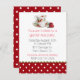 Elégante invitation à la fête du thé, avec un motif à points de polka rouge et blanc, en face du fond avec une pointe verte. Une photo d'une jolie tasse de thé et de fraise orne le sommet de l'invitation. Personnalisez le texte personnalisé de votre événement.
