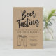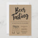 Invitation à une dégustation de bière -- Utilisez-la pour un événement annuel, un anniversaire, une fête de fiançailles, un enterrement de vie de garçon ou tout autre événement spécial que vous souhaitez célébrer avec une dégustation. Invitez vos invités avec une illustration faite à la main représentant un toast à la bière sur un magnifique fond kraft rustique.