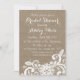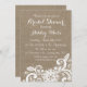 Invitation à la douche nuptiale pour un mariage rustique avec burlap et dentelle. Vous pouvez customiser le texte, la police, la couleur et le placement ! Cette invitation correspond à la collection Rustic Burlap and Lace dans mon magasin : http://www.zazzle.com/collections/burlap_and_lace_for_rustic_wedding-119613768546532247?rf=238757713317449265