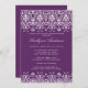 Commencez votre évènement par notre invitation à la douche nuptiale avec un magnifique damas blanc sur un riche arrière - plan violet . Combinaison de couleurs blanches et noires tendance. customisez simplement notre invitation avec vos informations wedding showers et vous êtes tous prêts à partir. Disponible dans d'autres combinaisons de couleurs à l'adresse www.celebrateitinvites.com