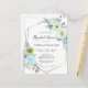 Célébrez avec vos amis proches à votre douche nuptiale et les invitations avec cette jolie carte postale d'invitation à la douche nuptiale à fleurs bleues. Ce design présente un beau cadre géométrique doré avec des bouquets de fleurs d'aquarelle douce avec des roses et des hydrangées en bleu et blanc cassé. Délicate garniture botanique avec feuilles bleus complète parfaitement ce bel invitation de douche nuptiale.
