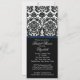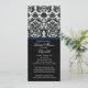 Commencez votre évènement avec notre invitation à la douche nuptiale damassée branchée et élégante, sur un arrière - plan noir avec un groupe Midnight Blue. customisez simplement notre invitation avec vos informations mariages et vous êtes tous prêts à partir. Disponible dans d'autres combinaisons de couleurs dans notre boutique www.celebrateitweddings.com. Consultez nos notes de remerciement, nos autocollants et nos boutons de fidélité dans notre boutique