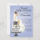 Commencez votre élégante douche nuptiale avec notre invitation branchée de la mariée Brunette, avec une mariée Blonde classée, assise sur un élégant gâteau de mariage damassé à 3 étages, sur un arrière - plan bleu violet. customisez simplement notre invitation avec vos informations wedding showers et vous êtes tous prêts à partir. ©Illustrations JW