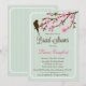 © 2012 Socialite Designs. Célébrez le prochain mariage de la mariée avec cette élégante invitation à la floraison de cerisiers (sakura) et à la douche de nuptiale d'oiseaux. L'arrière - plan est décoré de rayures et de cadres. Un texte supplémentaire peut être ajouté à l'invitation à l'arrière. Customisez facilement cette invitation pour d'autres occasions spéciales en appuyant sur le bouton "Personnaliser" et en ajoutant vos informations sur l'événement.