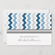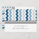 Les invitations à la douche nuptiale dans les élégantes rayures zigzags zigzags zigzags bleu marine, gris et blanc gris et décontracté chevron motif, chic et féminin, personnalisables avec vos détails de douche. Également disponible en cartes de remerciement et invitations pour la fête de mariage.