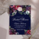 Chic invitation à la douche nuptiale avec des fleurs d'aquarelle en marsala bordeaux, rose et violet, avec feuillage botanique vert et feuilles d'eucalyptus. Un beau choix de couleurs luxuriantes et saturées pour les fêtes d'automne ou d'hiver.