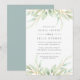 Elégante aquarelle botanique nuptiale invitation encadre vos détails de douche nuptiale avec une bordure d'aquarelle pastel pur feuillage en vert pâle et cool.