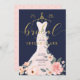 Annoncez votre événement de douches nuptiales avec notre invitation à la mariée pour les futurs mariés dans notre rose de jardin fleuri élégant, élégant et branché. Le design présente notre robe de mariage rose pâle et blanche, chic, élégante et moderne peinte à la main, avec un jardin botanique de roses et de fleurs en fleurs. La robe florale est accrochée à un cintre orné de style vintage imitant la robe dorée. Les détails de dentelles de fleurs douces et les emblèmes étincelants de la robe mariage confèrent à l'ensemble un look magnifique, sophistiqué et luxueux. Une belle écriture de style manuscrit typographie "Bridal" en faux or. Le bleu marine, le rose roux et la palette de couleurs faux or créent un style chic et vintage branché, décliné en noir et blanc. Le revers de la page présente un arrière - plan rose pâle et minimaliste avec un motif de coeur doré qui complète magnifiquement les oeuvres d'art avant. Toutes les illustrations contenues dans cette élégante invitation à la douche nuptiale en robe florale mariage sont des oeuvres d'art originales dessinées à la main par Moodthology. Vous pouvez customiser la taille du texte, la couleur du texte, la police et la mise en page de votre choix de conception personnelle.