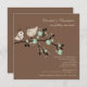 Commencez votre évènement par notre invitation à la douche nuptiale moderne et branchée, avec une mignonne paire d'oiseaux mariés et mariés amoureux, assis sur une branche florale verte à la menthe sur un arrière - plan marron. customisez notre belle invitation à la douche nuptiale avec vos informations mariages et vous êtes tous prêts à partir.