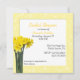 Jolie invitation à la douche nuptiale, avec des images d'un cadre jaune et blanc, autour d'une zone de texte blanc. Une jolie photo de jolis jonquilles jaunes ornent le bas à gauche de l'invitation. Le texte en jaune et gris foncé est prêt à être personnalisé pour votre événement de mariage. Jolie invitation à la mariée chérira pour toujours.