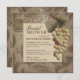 Un bel amas de raisins dorés invitation vos invités à une merveilleuse Fête de l'mariée sur le thème du vin. Parfait lorsque la mariée est un amateur de vin ou que l'événement se tiendra dans un vignoble ou un vignoble. Dans ce dessin, les raisins et les feuilles ont un effet texturé et semblent briller sur un arrière - plan de papier à motifs paisley vintages vieilli. Très ancien et élégant dans son style, ce design fait un invitation unique et très personnel pour votre épouse.