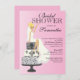 Commencez votre élégante douche nuptiale avec notre invitation branchée à la mariée blonde, avec une mariée blonde classe, assise sur un élégant gâteau mariage damassé à 3 étages. customisez simplement notre invitation avec vos informations wedding showers et vous êtes tous prêts à partir. ©Illustrations JW