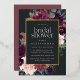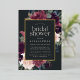 L'élégante invitation à la douche à nuptiale florale présente une bordure de marsala bordeaux pourpre, rose rousse et bleu poussiéreux, avec un feuillage botanique luxuriant et des garnitures en feuille d'or et de verdure. Personnalisez avec vos détails de douche nuptiale en lettres modernes sur un riche arrière - plan au charbon de bois.