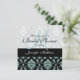 Élégante invitation à la douche nuptiale avec Robin Oeuf Bleu clair et noir Damas motif et Monogramme bleu clair. Invitations De Douche Bridal Entièrement Personnalisables. Conception par Elke Clarke ©2011.com et WhiteWhimsicalWeddings.blogspot.com. Customisez avec vos noms monographiques et couleurs mariages. Ajoutez tout le texte de votre invitation en utilisant les invites de menu faciles à utiliser de Zazzle ou sélectionnez "customiser" et changez la couleur arrière - plan et la couleur monogramme.