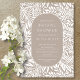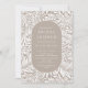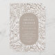 Motif moderne feuille et fleur avec un ovale élégant encadrant vos informations de fête en taupe et blanc.