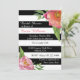 Élégante invitation à la douche nuptiale faite dans un motif à rayures horizontales noir et blanc audacieux, avec aquarelle des fleurs colorées, dans le coin supérieur droit et le coin inférieur gauche. Personnalisez le texte pour votre événement nuptial.