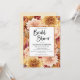 Ajoutez une touche saisonnière chaleureuse à votre célébration avec l'Invitation à la douche nuptiale d'automne Floral. Conçu avec des couleurs chatoyantes brun et chameau, il saisit parfaitement le charme douillet de l'automne. La police manuscrite en gras pour la Fête des mariées ajoute une touche moderne et personnelle, ce qui fait ressortir l'invitation. Les fleurs environnantes dans les tons terreux créent un décor rustique mais élégant pour vos détails d'événement. Imprimé sur un carton haut de gamme, il offre une durabilité et un fini poli que les clients admirent. La disposition offre beaucoup d’espace pour mettre en évidence le nom, la date, l’heure et l’emplacement de la future mariée. Son design d'inspiration automnale s'associe harmonieusement à des thèmes rustiques, boho ou cosy à l'intérieur. Idéal pour les réunions intimes et les grandes célébrations, il donne le ton d'un événement profond. Une façon élégante et accueillante de célébrer l'amour dans la beauté de l'automne. Merci d'être venu !