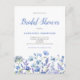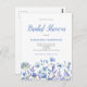 Carte postale invitation à la douche nuptiale florale bleue. Elégant design fleur sauvage aquarelle. Facile à modifier le texte.