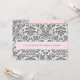 Les invitations nuptiales dans l'élégante couleur rose bébé, gris fusain et blanc vintage classique motif damas floral, chic et féminin, personnalisable avec vos détails de douche. Également disponible en cartes de remerciement et invitations pour la fête de mariage.