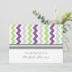 Des invitations à la douche nuptiale dans d'élégants tons vert citron clair, violet foncé, gris et blanc rétro et décontracté chevron zigzags raypes motif, chic et féminin, personnalisables avec vos détails de douche. Également disponible en cartes de remerciement et invitations pour la fête de mariage.