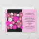 Une élégante invitation à la douche nuptiale pour la mariée moderne avec des marguerites gerbées sur un arrière - plan noir. Disponible en couleurs alternatives. Veuillez nous contacter si vous cherchez une autre combinaison de couleurs. Des cartes de remerciement, des faveurs et des frais d'affranchissement sont également disponibles.