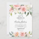 Invitation florale rose pâle avec roses florissants arrangés avec des eucalyptus frais de verdure