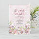 Jolie invitation à la douche nuptiale rose avec un arrière - plan à motifs floraux. © Mini Moi Prints