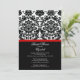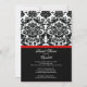 Commencez votre évènement avec notre invitation à la douche nuptiale damassée branchée et élégante, sur un arrière - plan noir avec un groupe rouge. customisez simplement notre invitation avec vos informations mariages et vous êtes tous prêts à partir. Disponible dans d'autres combinaisons de couleurs dans notre boutique www.celebrateitweddings.com. Consultez nos notes de remerciement, nos autocollants et nos boutons de fidélité dans notre boutique