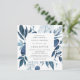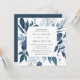 Notre invitation à la douche nuptiale Wild Azure dans un format carré unique encadre vos détails de douche nuptiale avec aquarelle peinte feuillage dans des tons glacés de ciel, de fleur de maïs et bleu marine. Un choix moderne mais bio pour les douches nuptiales en toute saison.
