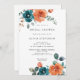 Invitation à la douche nuptiale à fleurs orange turquoise et brûlée. Elégante invitation à la douche nuptiale fleurie aquarelle avec de belles fleurs d'aquarelle peintes à la main disposées dans un bouquet dans les tons de rouille orange et foncé turquoise parfait pour la douche nuptiale d'été et d'automne. Vous pouvez personnaliser le libellé, le style de police, la couleur et la taille devant et derrière l'invitation. Éléments correspondants disponibles.