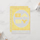 Invitation Baby shower neutre avec le mot BABY. Invitation a un arrière - plan de point jaune avec des accents gris. Customisez avec le nom du bébé devant la carte.