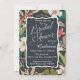 Vintage floral tropical sur un arrière - plan de marine sombre, et texte de calligraphie blanche font pour une incroyable invitation à la douche nuptiale. Veuillez noter que tout le texte du nom de la mariée est modifiable ; le verbiage supérieur (Rejoignez-nous pour une Fête des mariées en l'honneur de) est fixé et ne peut pas être modifié. *Image fournie par GraphicBox