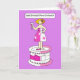Dessin d'une dame debout sur un gâteau. La dame et le gâteau sont colorés dans des couleurs différentes de part et d'autre. La dame dit 'Invitation de fête d'anniversaire à moitié'.