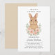 Invitation à la fête d'anniversaire avec lapin et fleurs roses