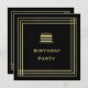 Une invitation à la fête d'anniversaire masculine et élégante pour hommes et garçons. Avec une jolie bordure dorée de lignes symétriques sur un arrière - plan à effet texturé noir avec une image imprimée d'un gâteau...Le verso de cette carte a vos détails d'événement avec l'image ajoutée d'une tranche de gâteau en haut à gauche et en bas à droite. Tout le texte est entièrement personnalisable pour répondre à vos besoins. Si vous désirez obtenir de l'aide pour customiser ou si vous souhaitez faire correspondre des produits, veuillez me contacter par l'intermédiaire de mon magasin et je serai très heureux de vous aider.