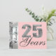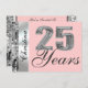 Ajouté à cette belle invitation est un modèle pour ajouter facilement n'importe quel nom ou noms sur le devant de la carte. Voici une invitation élégante, formelle et chic avec un grand graphique "25" argenté en 3D avec le texte "Years" en grande écriture formelle sur le devant. Personnalisez facilement le beau texte en écriture assorti au dos avec le nom, la date et d'autres informations. De superbes invitations de fête "Save The Date" pour les 25 ans ou peut-être un anniversaire de mariage argenté pour ce couple spécial. Un beau cadre de bordure argenté sur le devant et le dos de l'invitation avec un fond rose clair, ou facilement changer en une couleur différente, ajoute à cette invitation chic. Ajoutés à ce design, des bordures de sequins argentés (imprimés) superbes des deux côtés de cette invitation chic. Riche et élégant, et pourtant