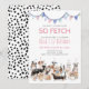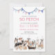 C'est l'anniversaire de votre chiot, et ça va être tellement amusant ! Invitez vos invités spéciaux avec cette adorable invitation illustrée à l'aquarelle représentant un groupe de chiens de différentes races, tous habillés en tenue de fête. Un design facile à personnaliser, utilisant notre modèle pré-conçu, avec une typographie écrite à la main. Le verso de la carte présente un design dessiné à la main en noir et blanc. Copyright Elegant Invites, tous droits réservés.