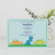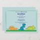 Commencez votre fête tout de suite avec notre amusant invitation d'anniversaire dino avec un dinosaure orange, bleu et vert sur un arrière - plan bleu et vert. Parfait pour un 1er anniversaire ou un anniversaire d'âge. Entièrement personnalisable par vous avec vos informations. ©Kelly Medina